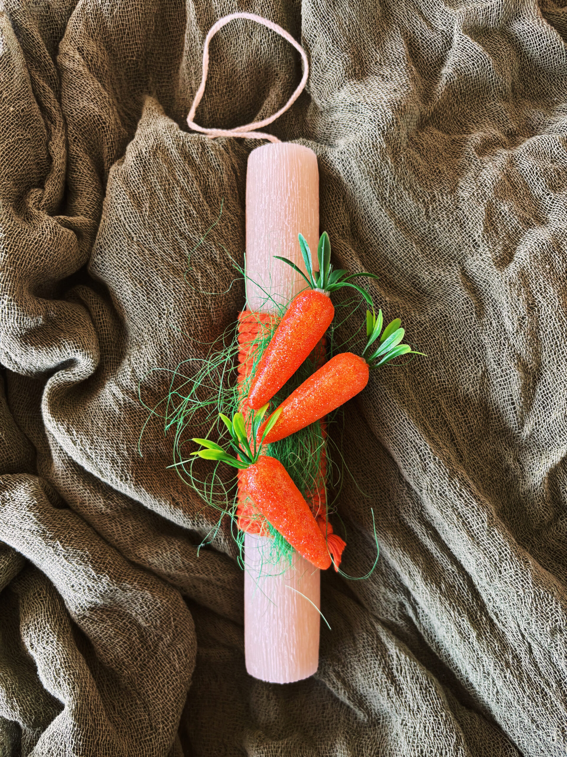 Αρωματική λαμπάδα με γκλίτερ καρότα και πράσινο χορταράκι.