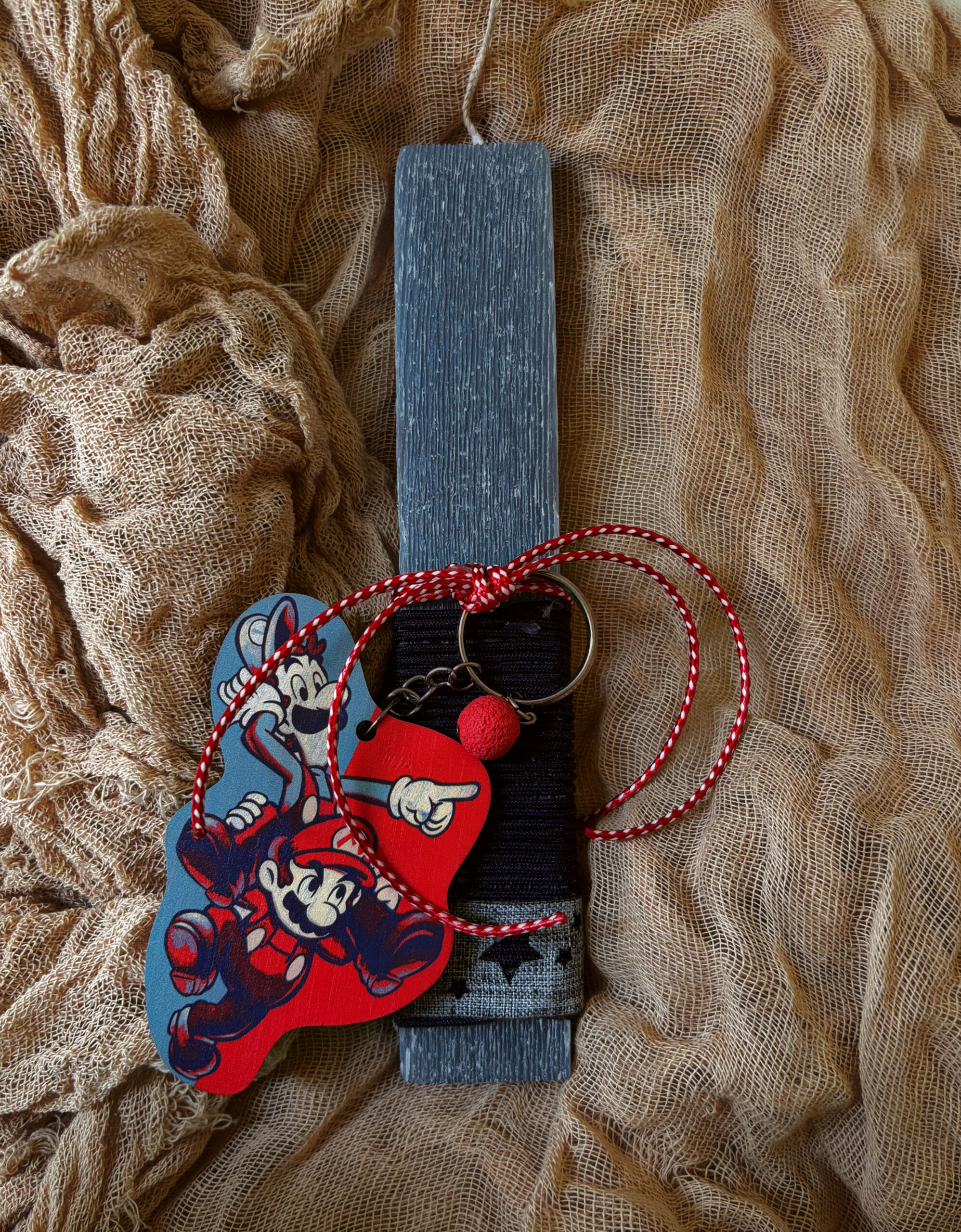 Αρωματική λαμπάδα με ξύλινο μπρελόκ Μάριο και Λουίτζι.