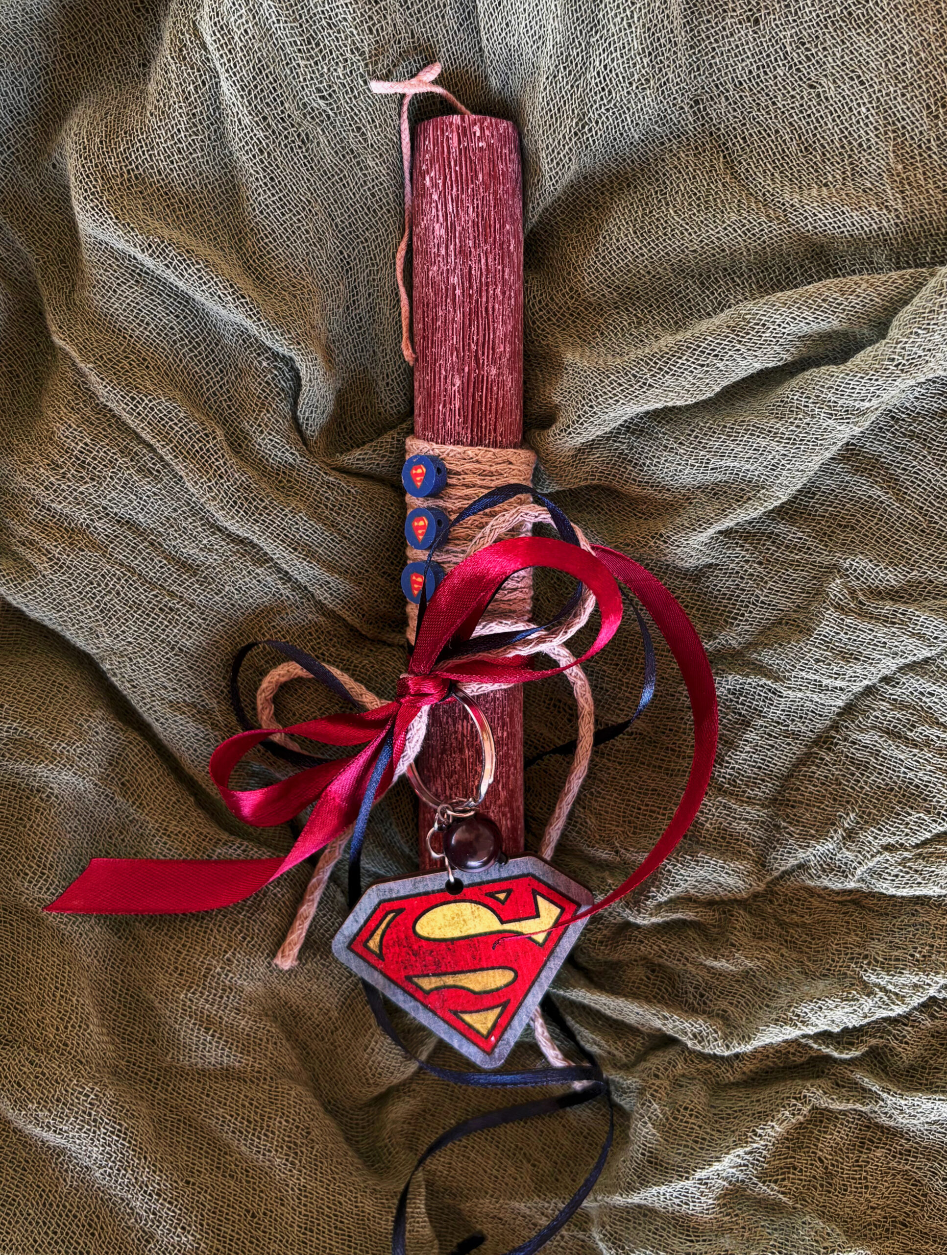 Αρωματική λαμπάδα με μπρελόκ σουπερμαν.