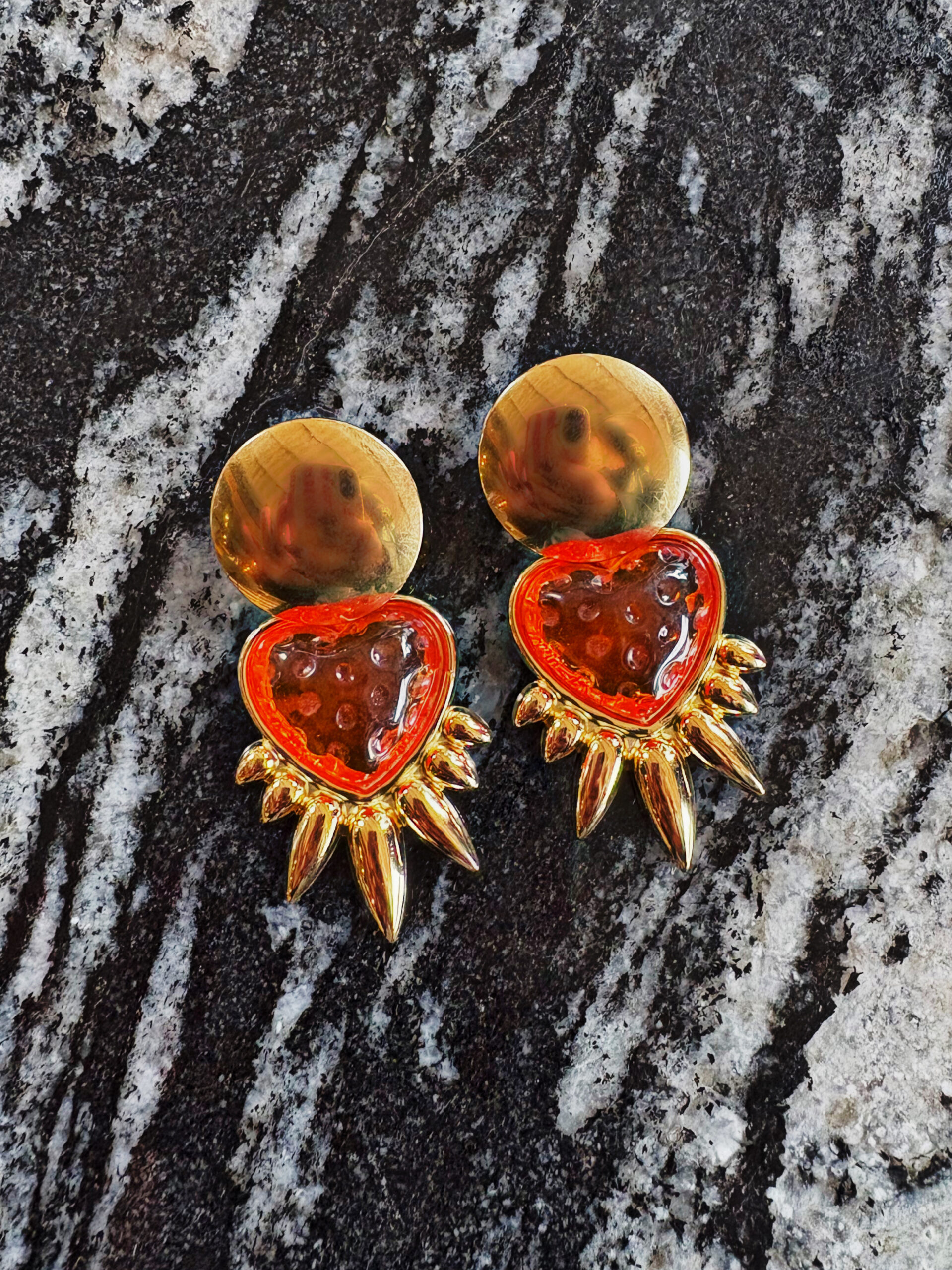 Μεσαίου μήκους ατσάλνα σκουλαρίκια με πορτοκαλί καρδιές.