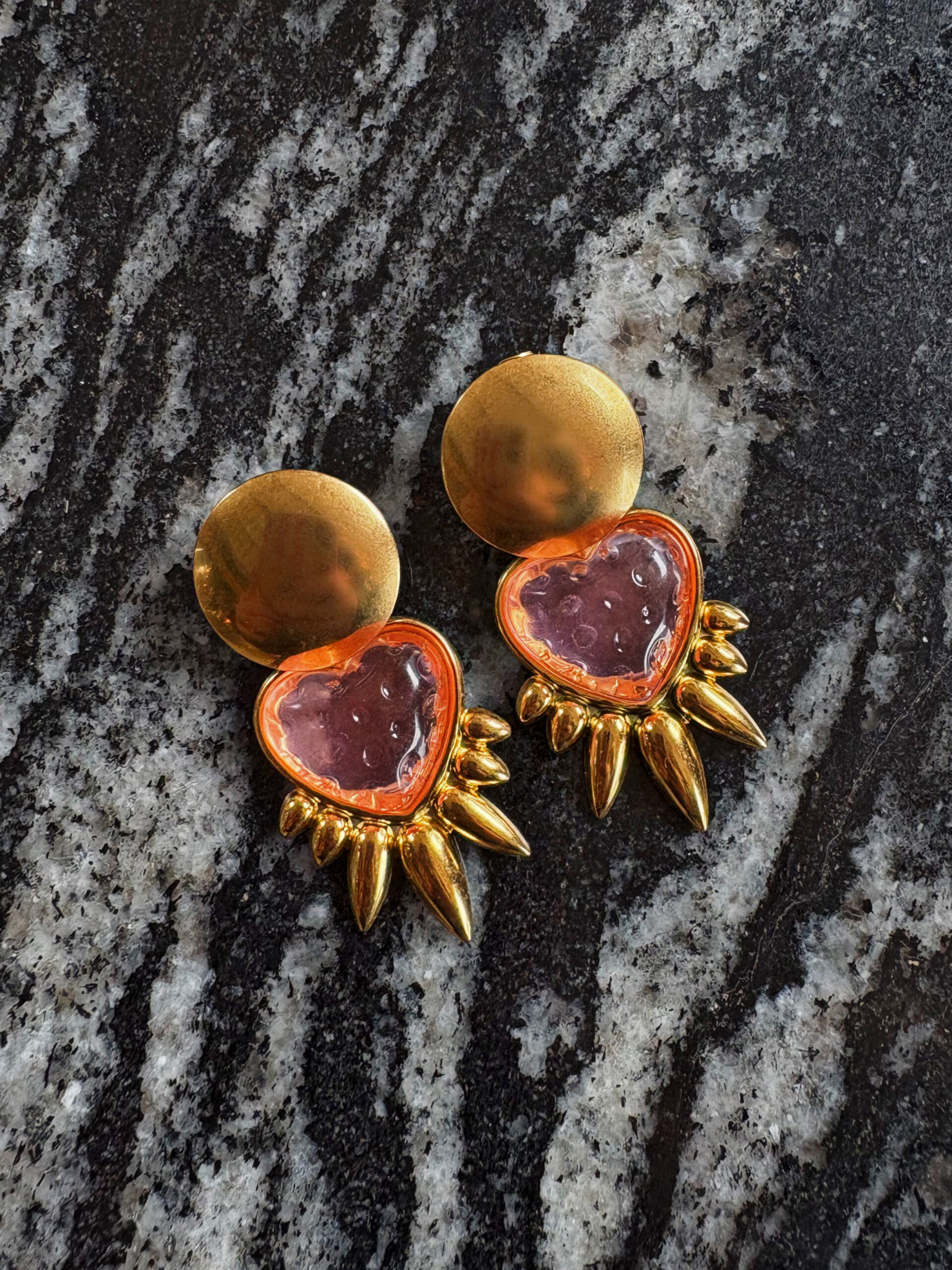 Μεσαίου μήκους ατσάλινα σκουλαρίκια σε ροζ-φραουλί χρώμα.