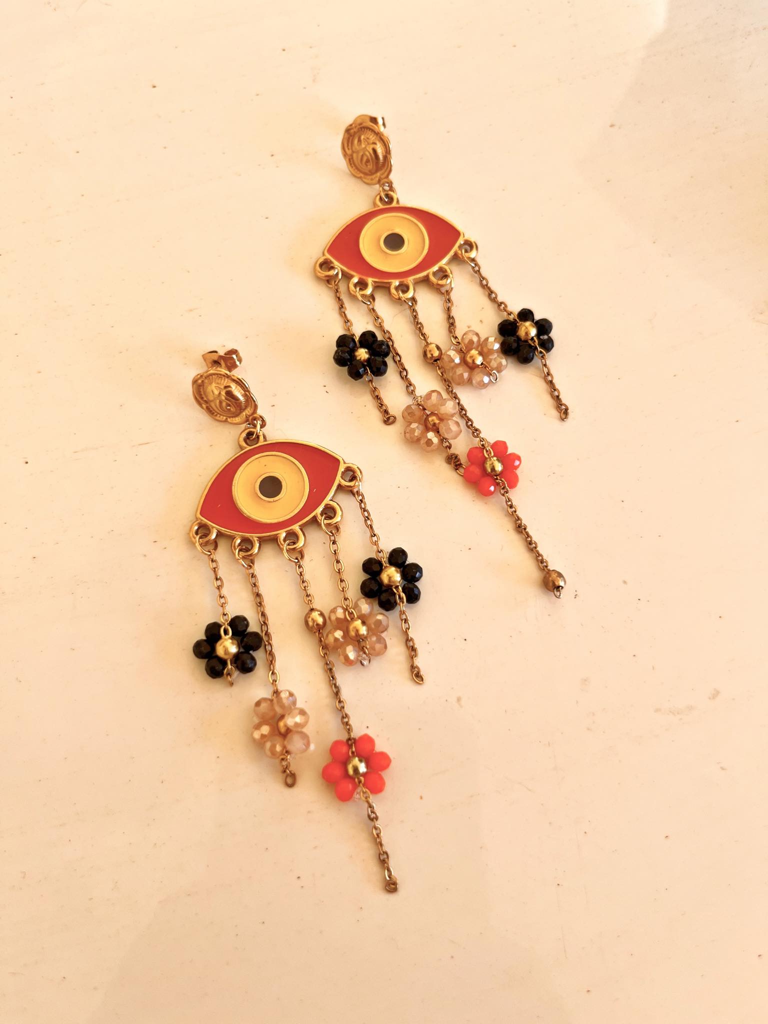 Μακρυά σκουλαρίκια με αλυσιδάκια με λουλούδια