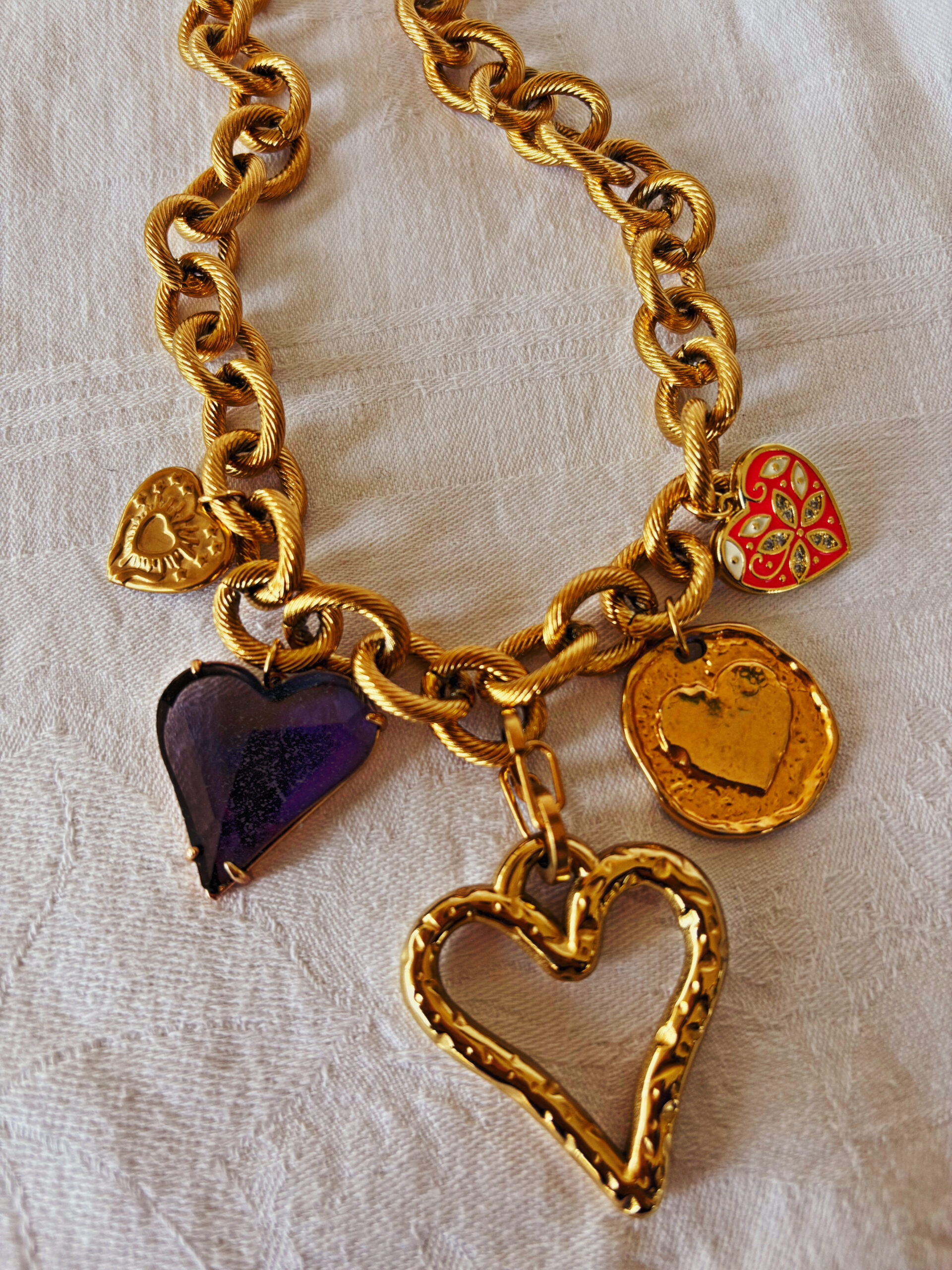 Κοντό κολιέ με αλυσίδα και πέντε διαφορετικές καρδιές.