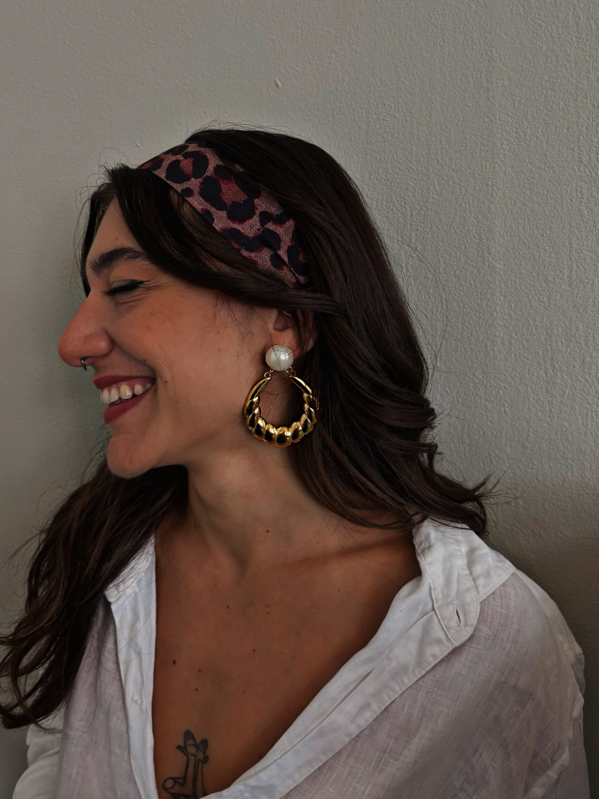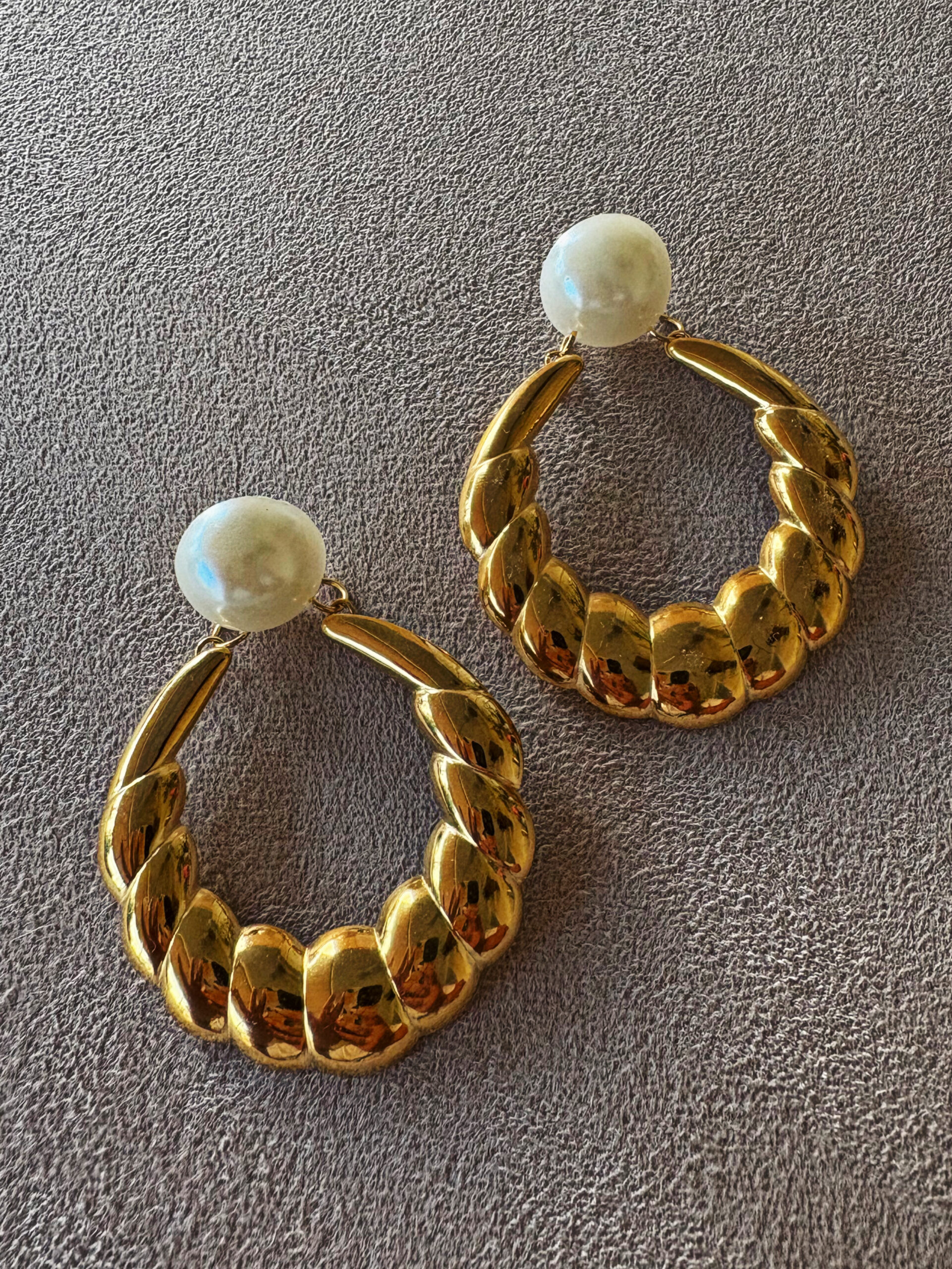 Εντυπωσιακά ατσάλινα σκουλαρίκια σε χρυσό με κουμπώματα-πέρλες.