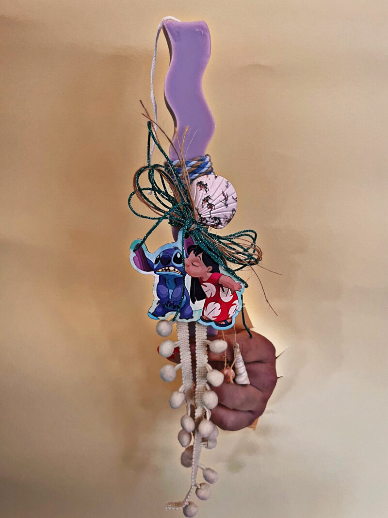 Πασχαλινή, αρωματική λαμπάδα, με κυματιστό κερί και φιγούρα Lilo & Stitch.