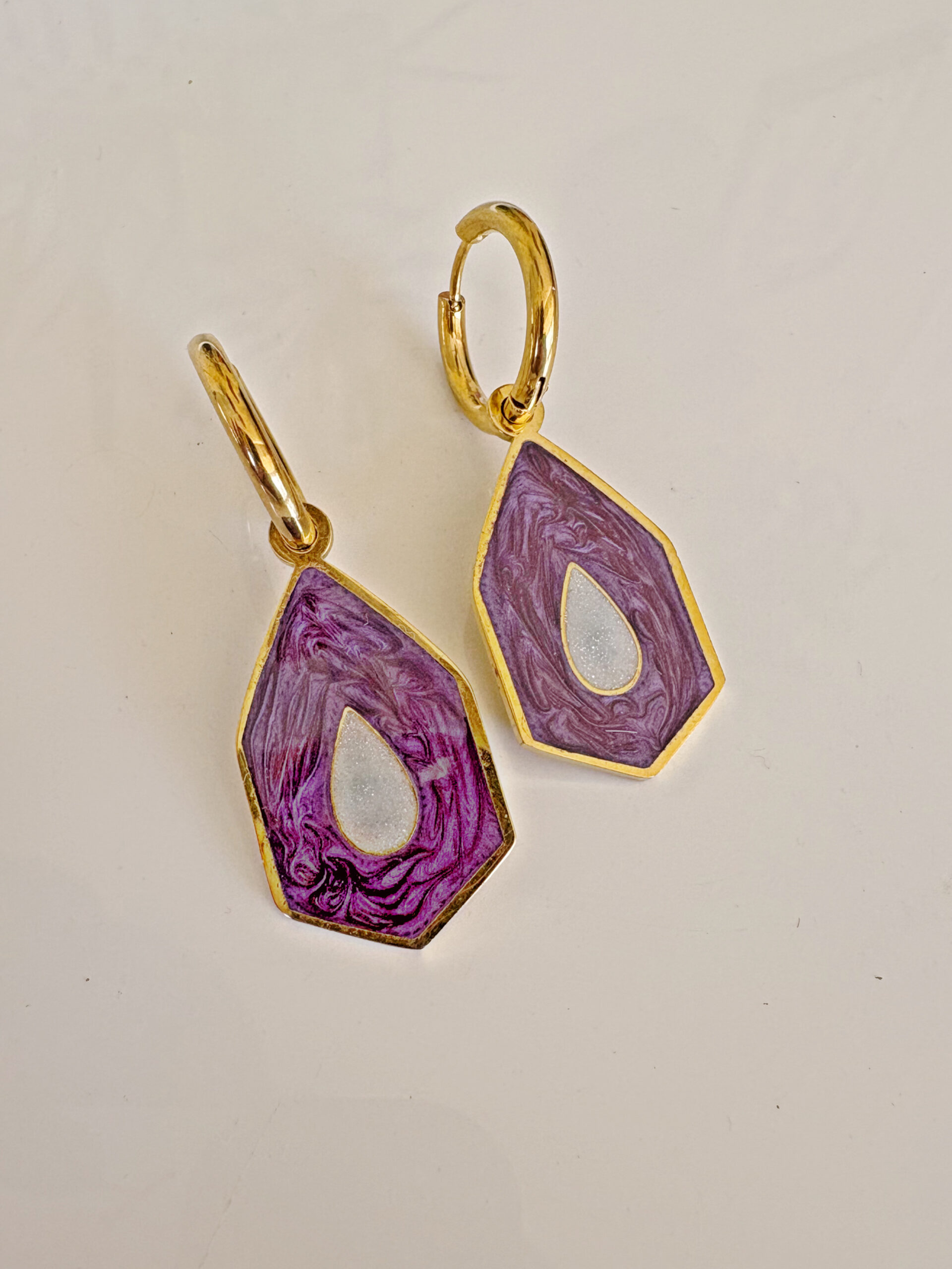 Ατσάλινα κρικάκια με κρεμαστά ατσάλινα στοιχεία σε μωβ χρώμα.