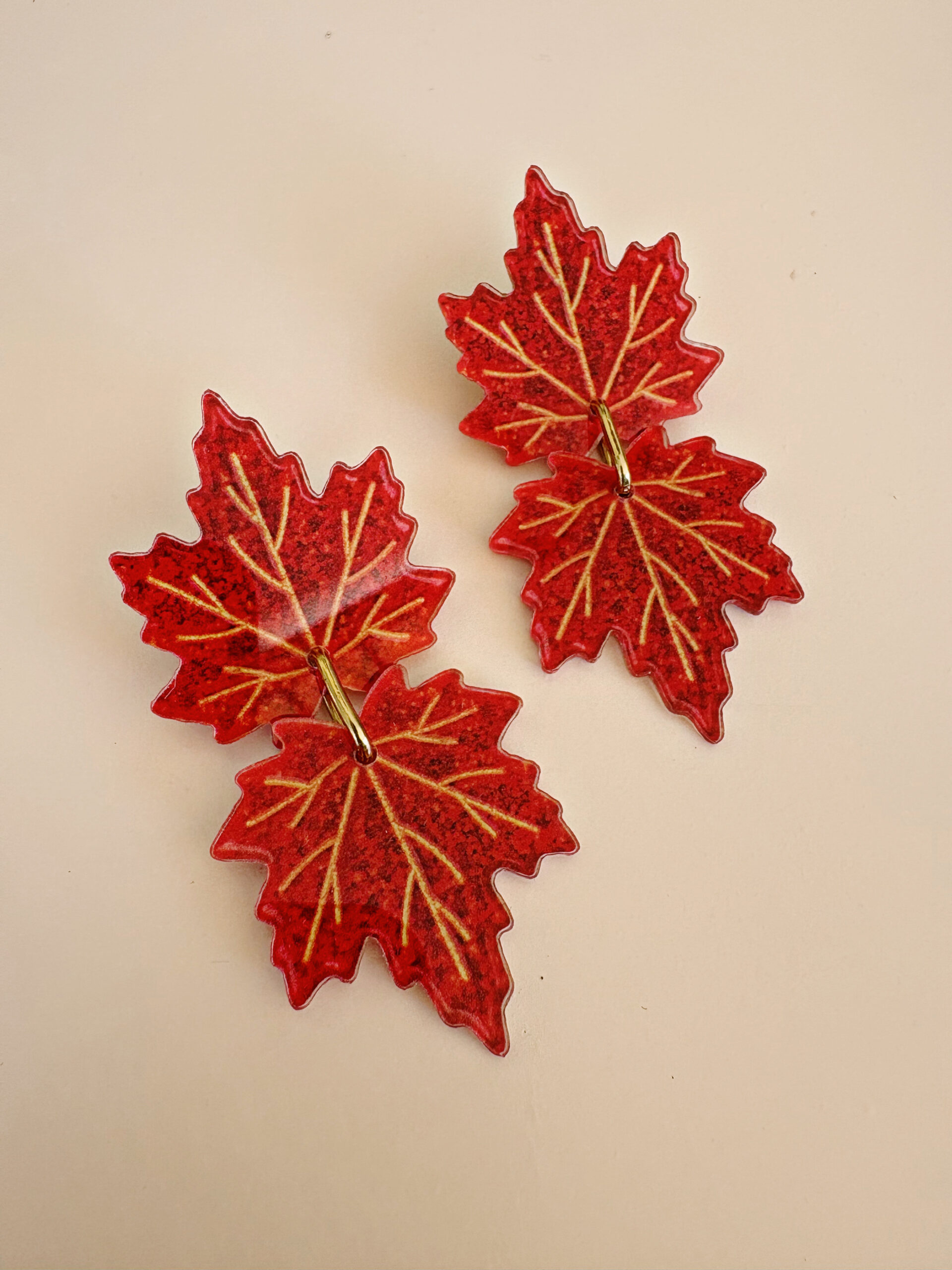 Σκουλαρίκια με φύλλα maple από plexiglass.