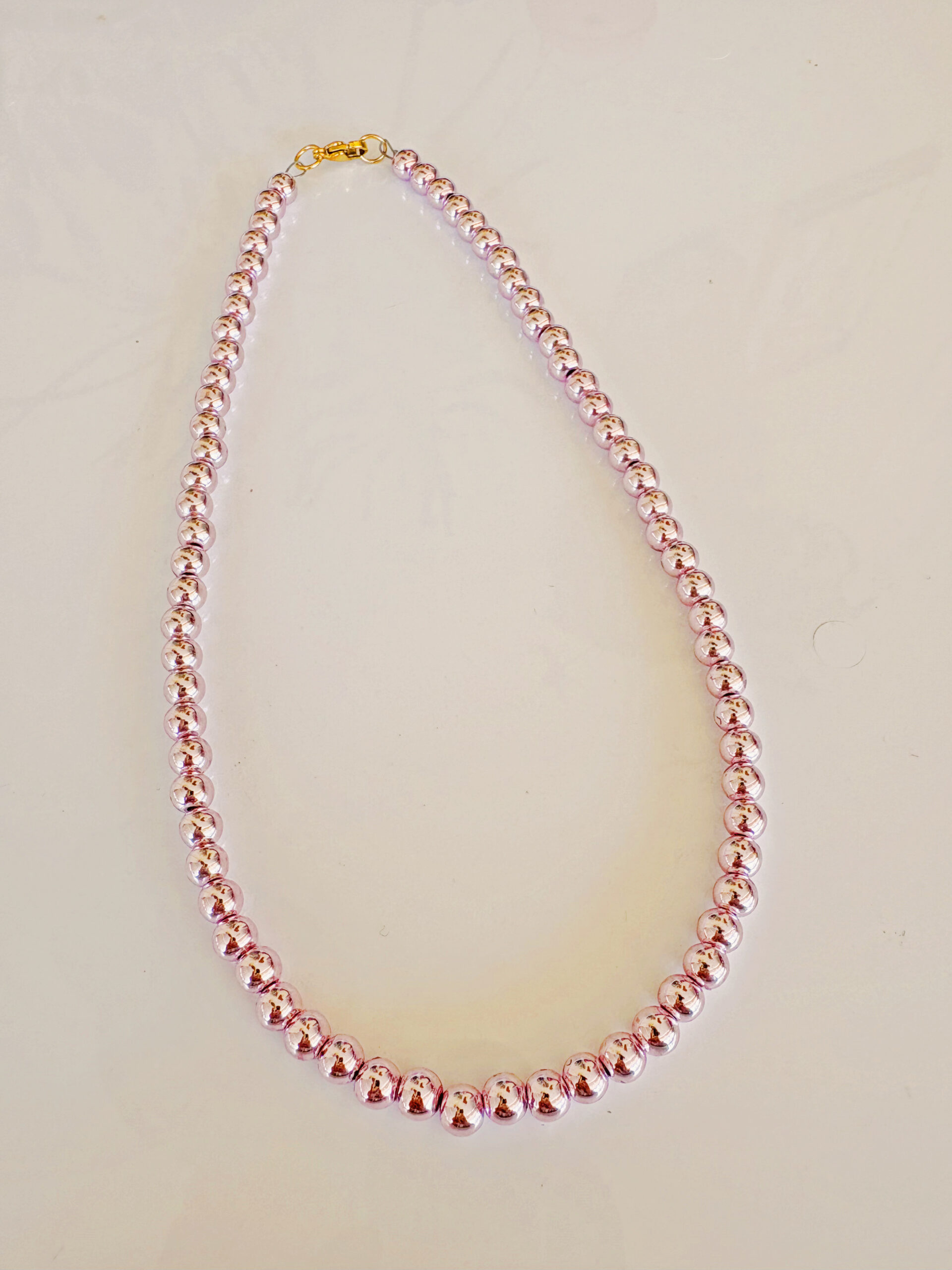 Κοντό κολιέ από αιματίτες ρε ροζ χρώμα.