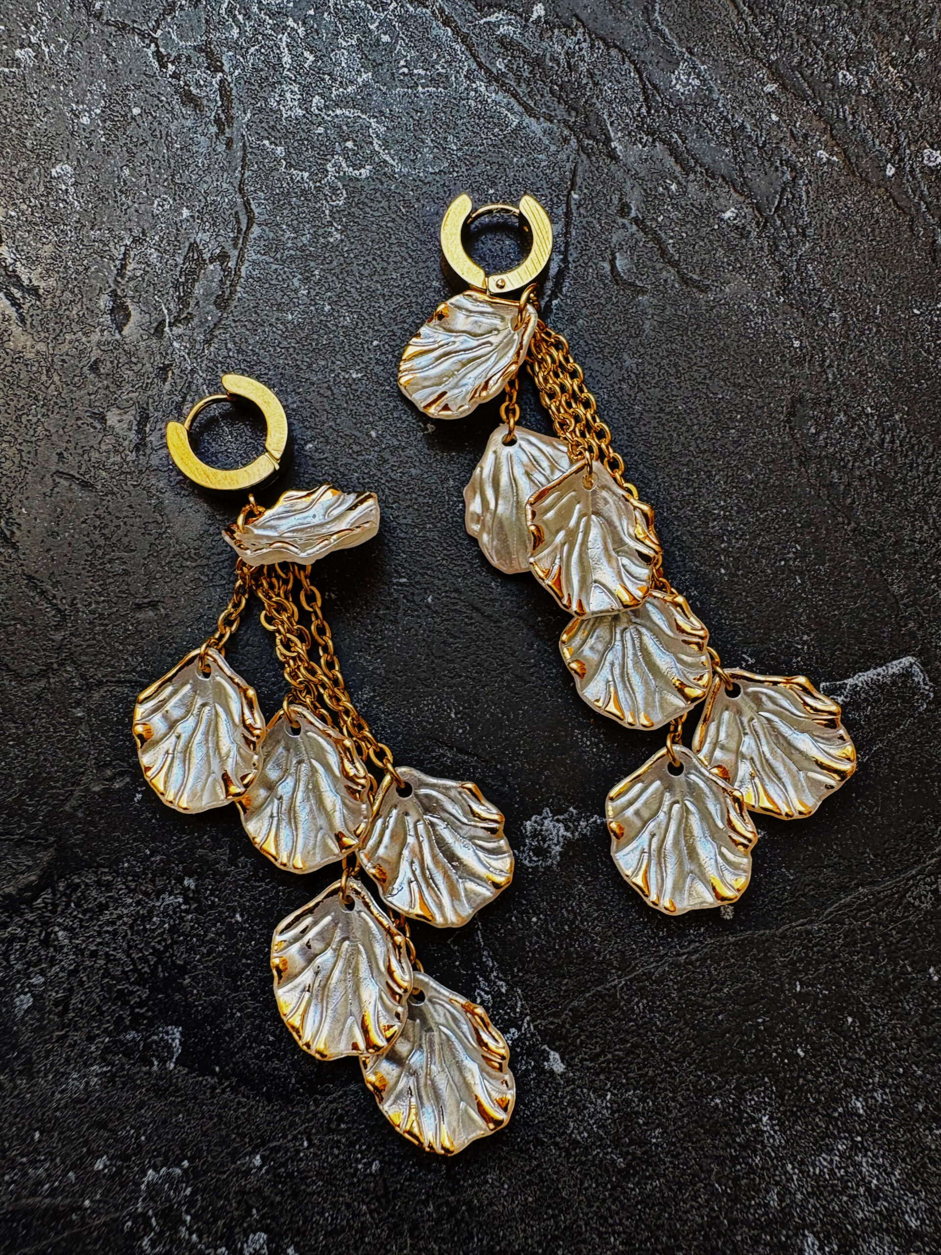 Ατσάλινα κρικάκια με αλυσίδες σε διάφορα μήκη και λευκά περλέ πέταλα