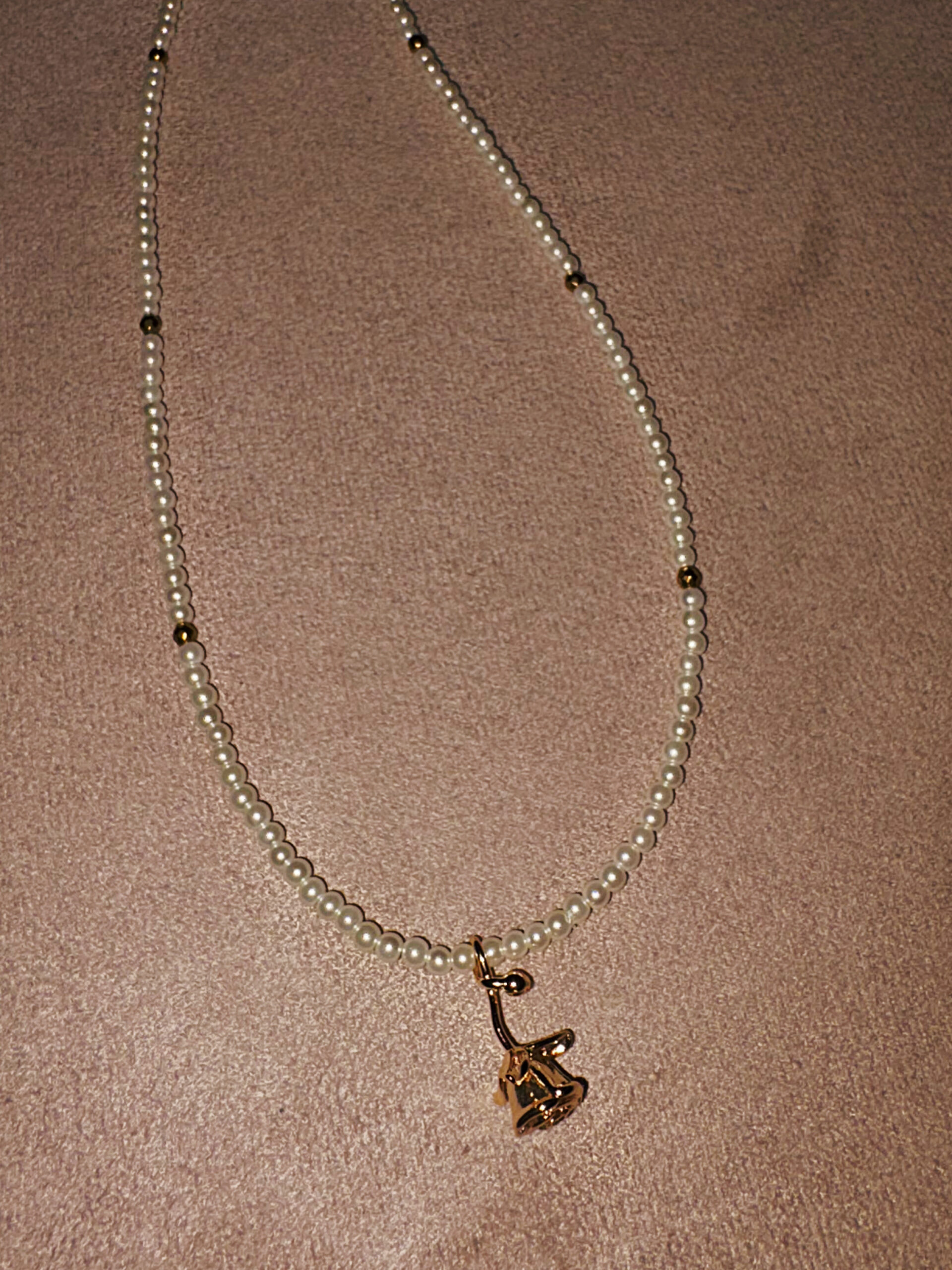 Κοντό κολιέ με χρυσό τριαντάφυλλο, πέρλες και αιματίτες.